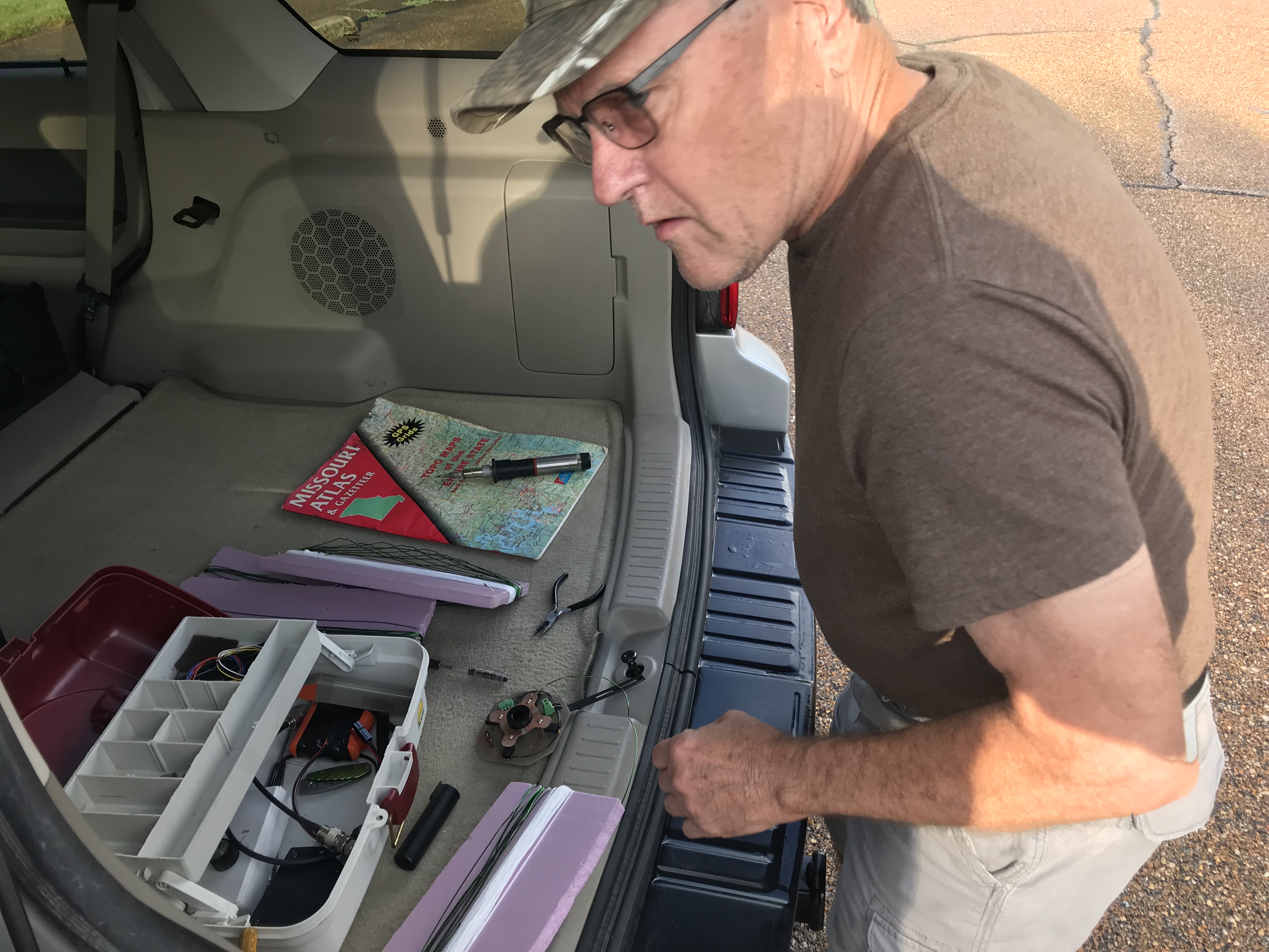 N0SA w/ tools and portable soldering iron, putting the finishing touches on the switchable wire beam